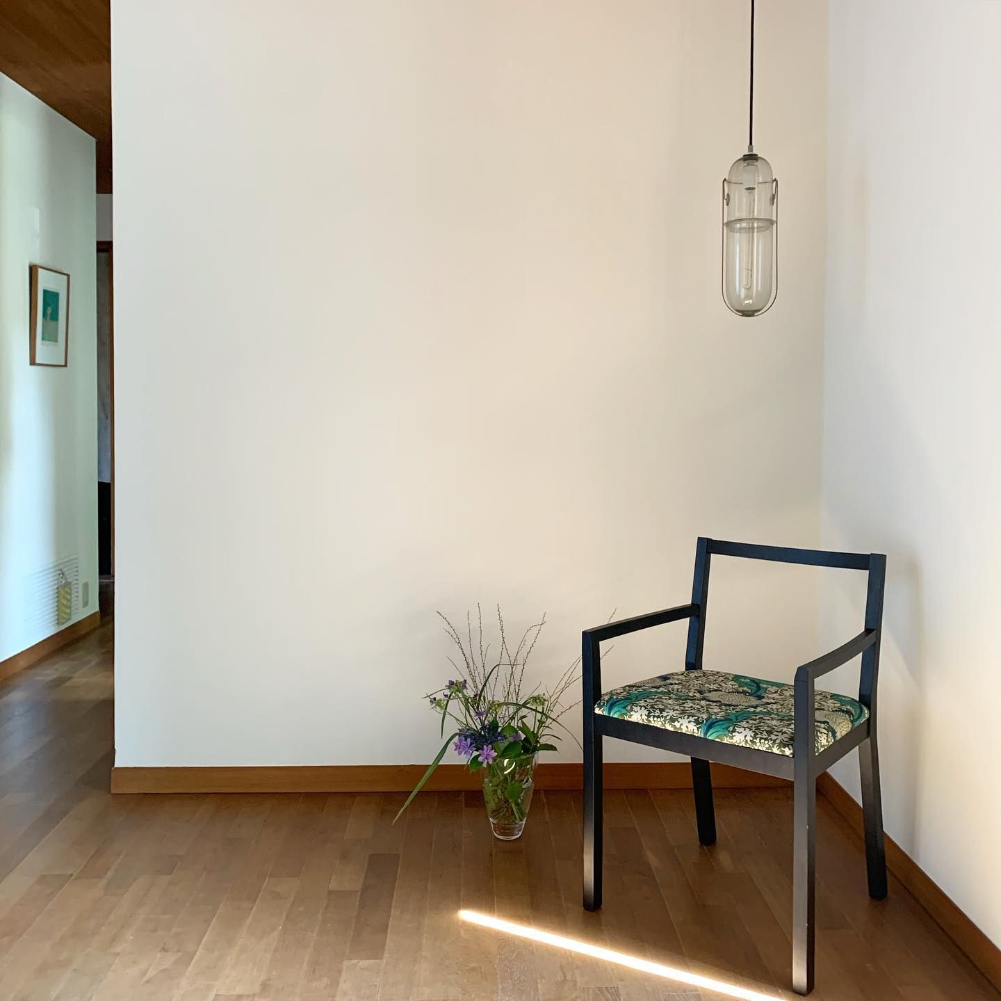 黒の美しいフレームのチェアに良く似合って、こんなふうに玄関のステキなアクセントになりました。